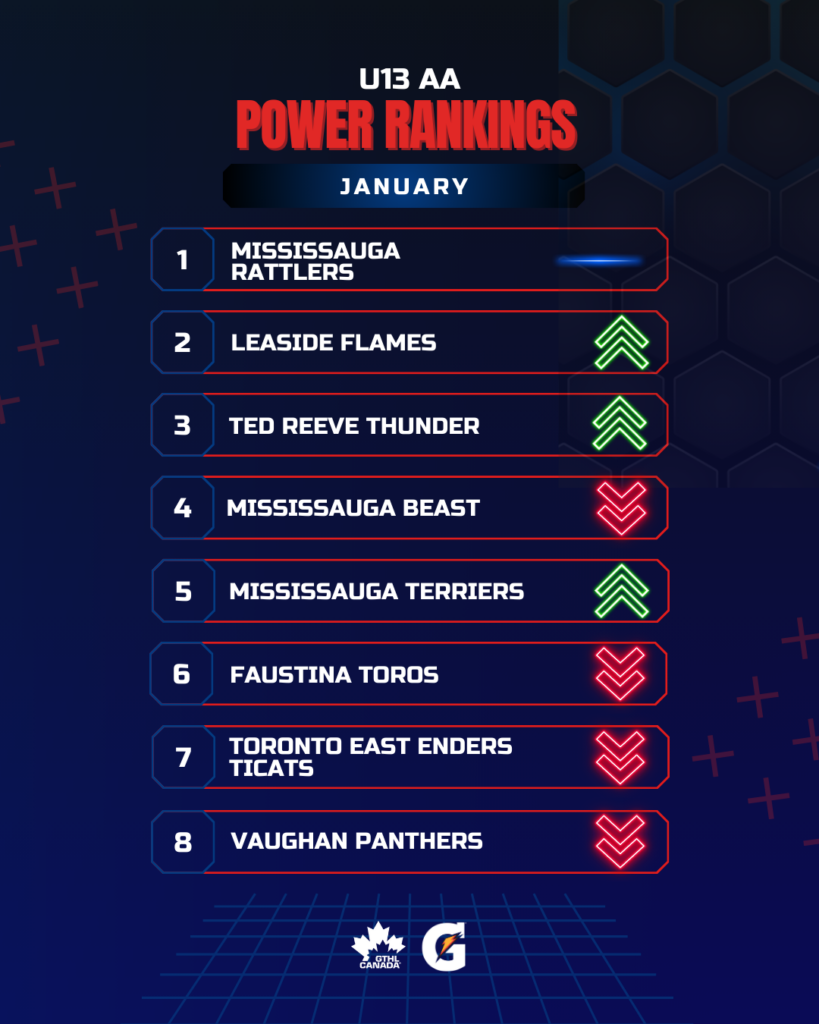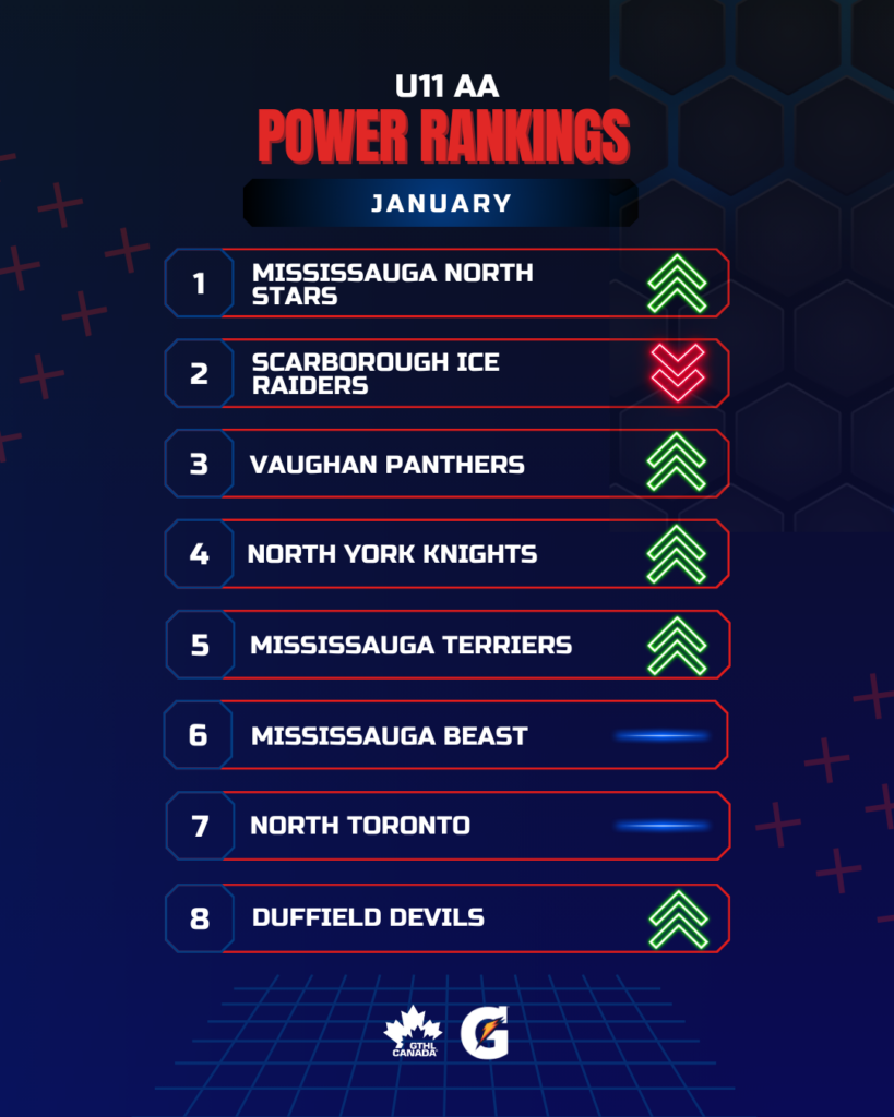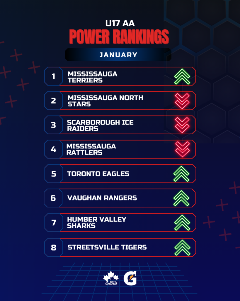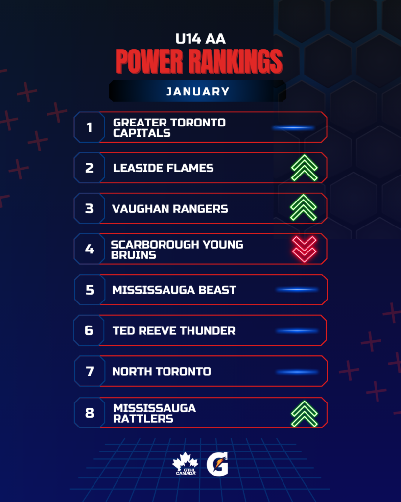 The Greater Toronto Hockey League Power Rankings kick off the second half of the 2025-26 season with a look at January. The GTHL Power Rankings, as a fun opportunity to highlight and celebrate teams’ accomplishments each month over the course of the season, feature the top eight teams across all competitive levels (‘A,’ ‘AA,’ and ‘AAA’) from Under-10 to U18.