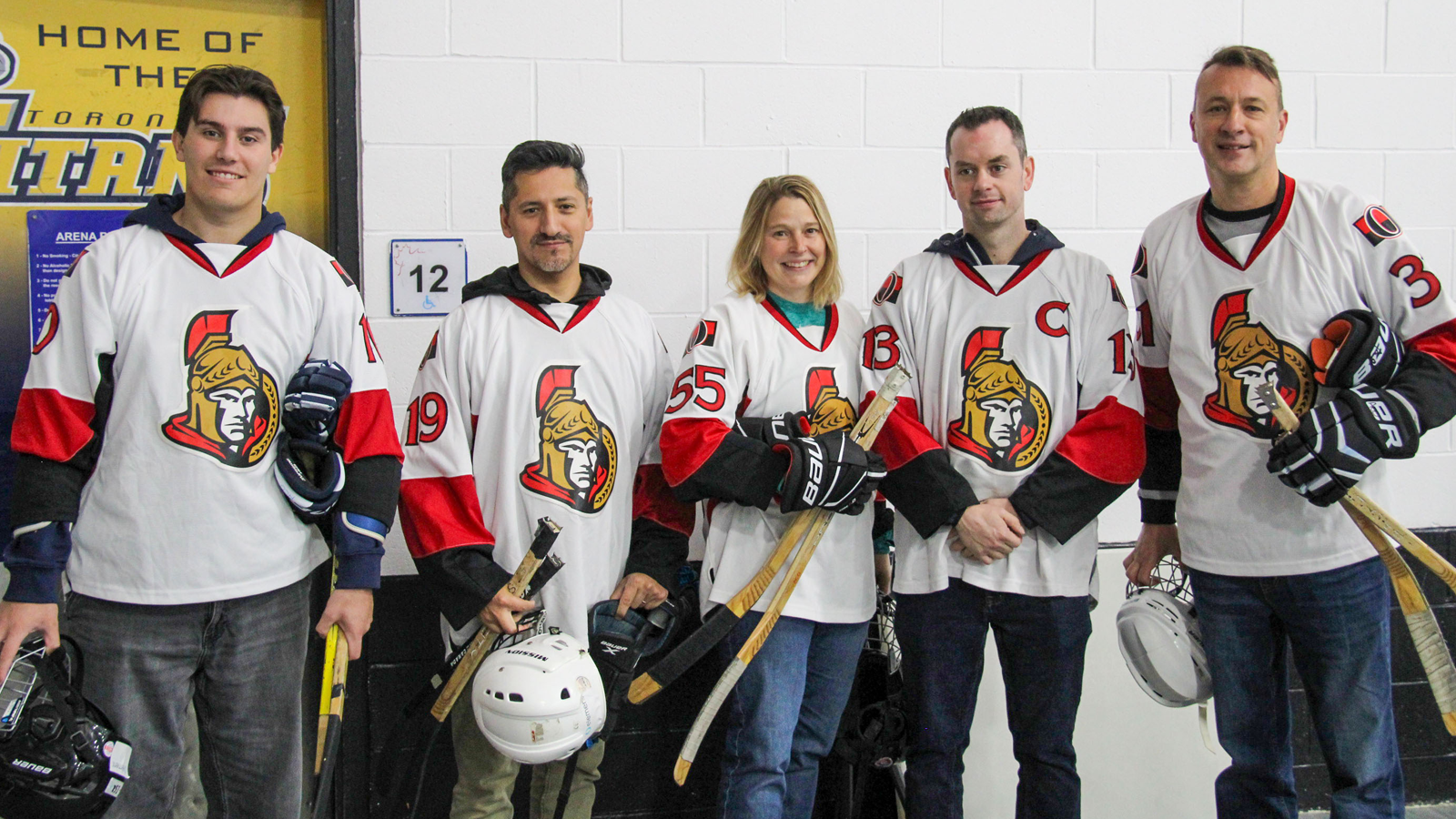 Pushing participants outside their comfort zone, Come to Sleigh encouraged players to experience the accessible sport of para ice hockey for the first time. Five GTHL staff members came together to form a team to participate in the event.