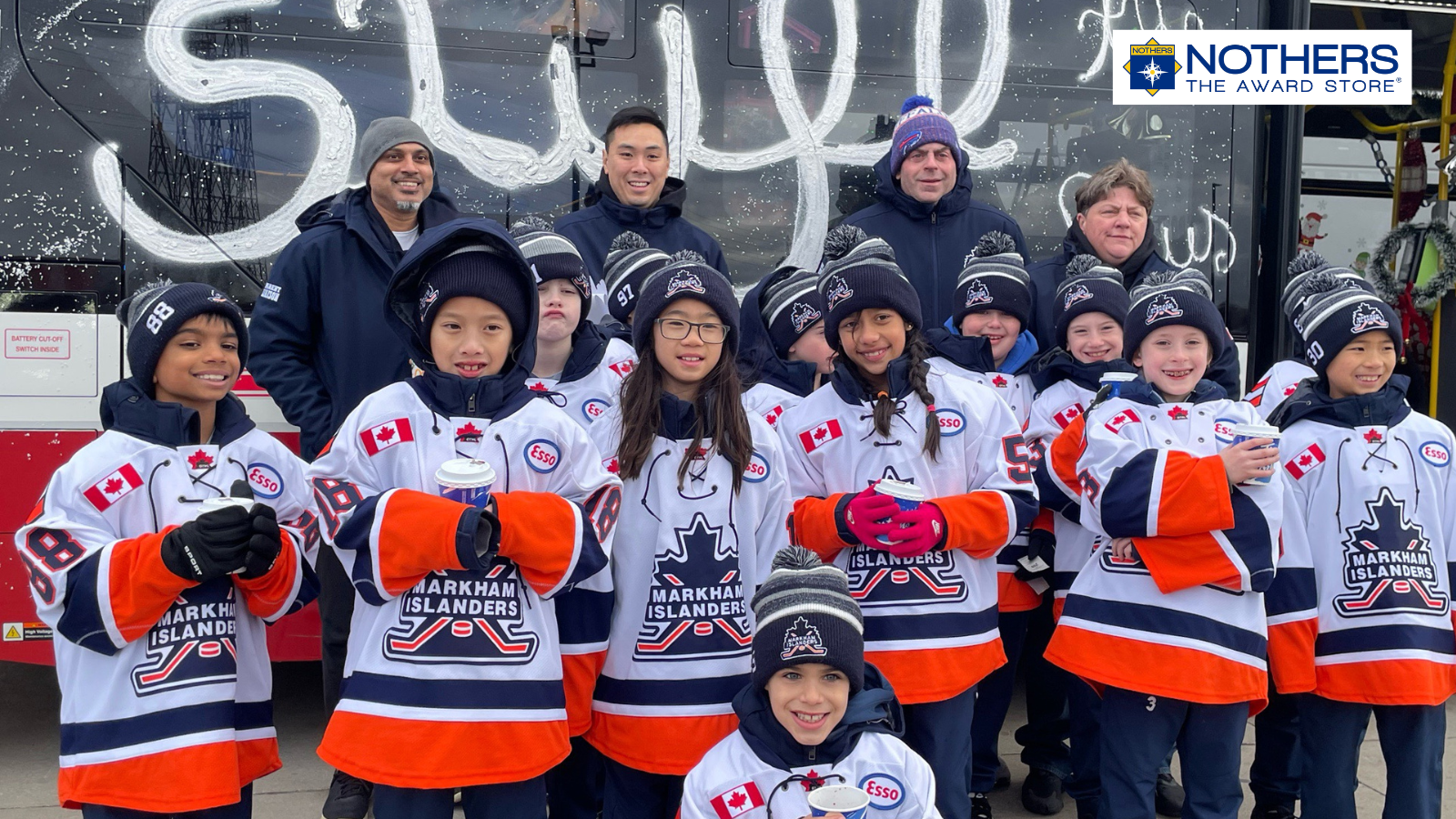 Despite the busyness of the hockey season, the Under-10 ‘A’ Markham Islanders took the time to give back to three community initiatives. Between November 23 and December 1, the team engaged with the Toronto Transit Commission’s (TTC) Stuff the Bus event, the Toronto Police Community Program, and the Salvation Army Shelter in Barrie.